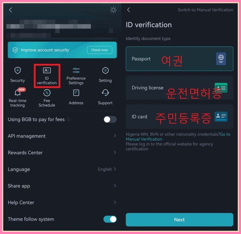 - Choose South Korea and select ID type: ID card, Driver’s license, or Passport